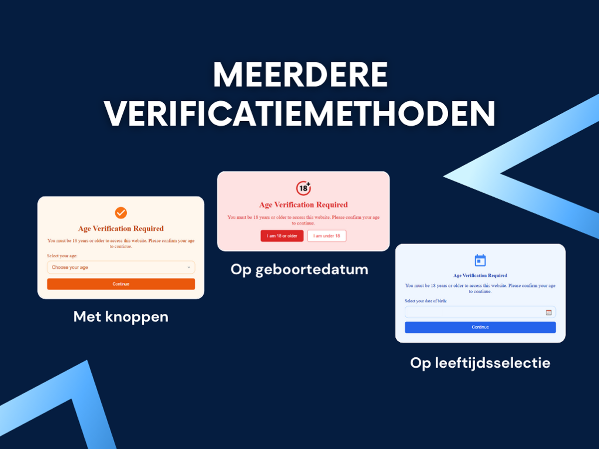 Bezoekers bevestigen hun leeftijd met eenvoudige ja/nee-vragen of door hun geboortedatum in te voeren, wat zorgt voor een soepele en respectvolle gebruikerservaring.