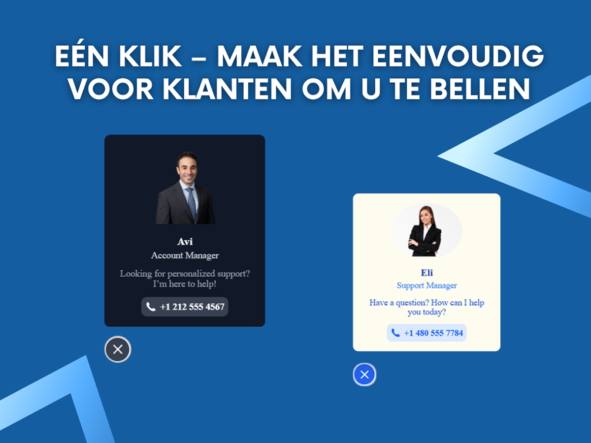 Met de “Click to Call”-knop kunnen klanten je met één klik bereiken via een volledig aanpasbare zwevende knop.