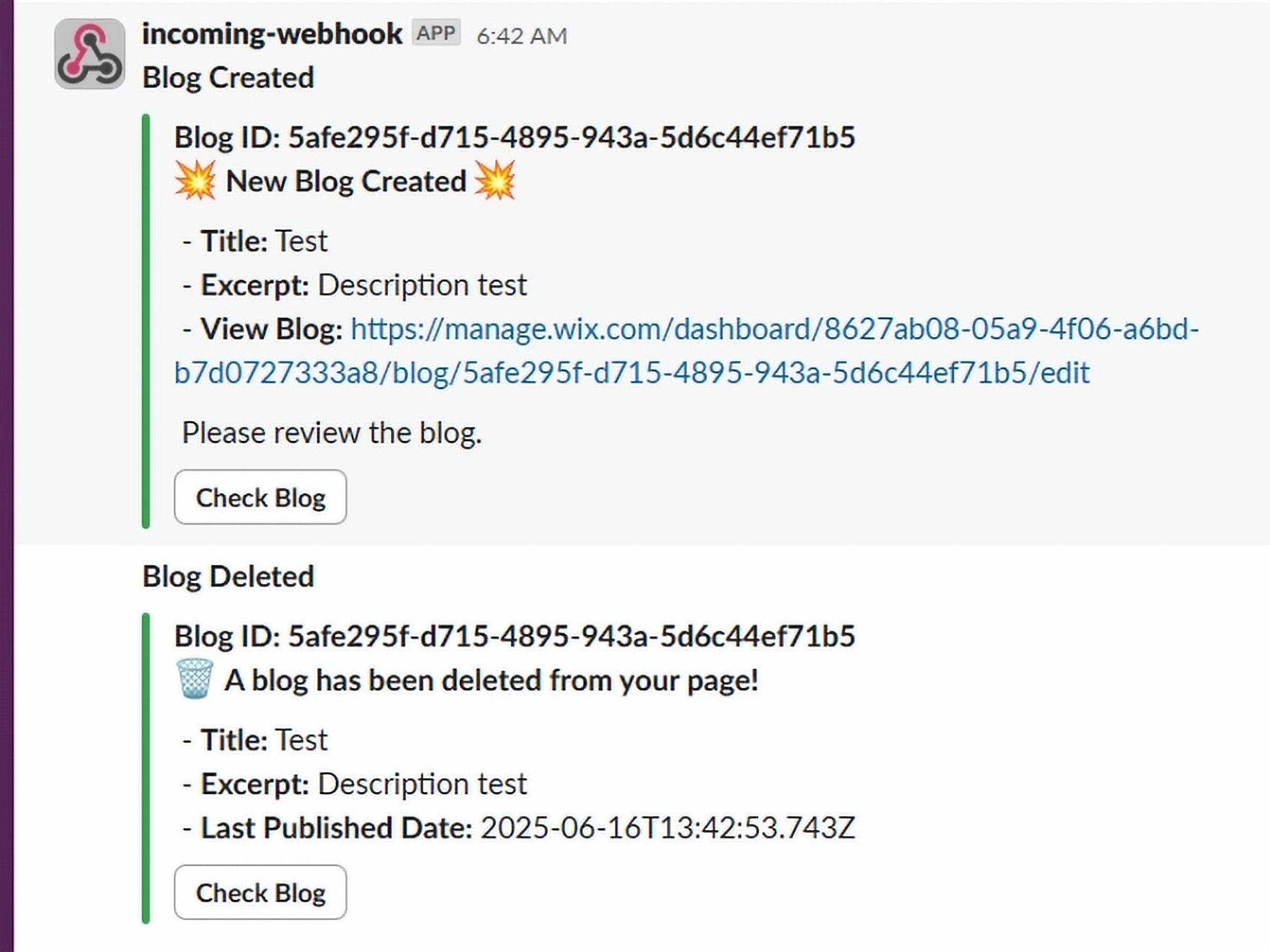 Receive notification via Slack when has a created blog