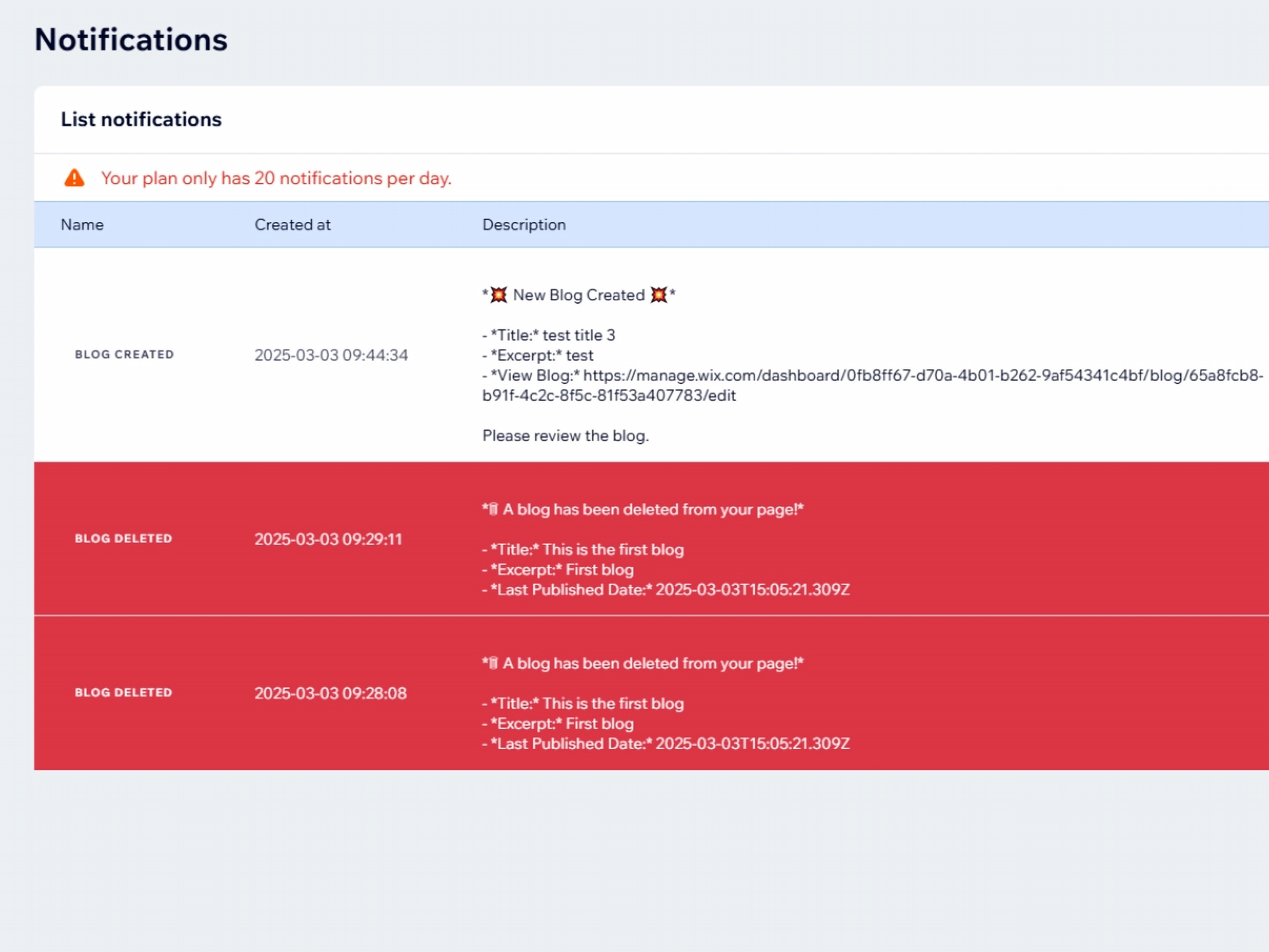 Receive notification via Slack when has a deleted blog