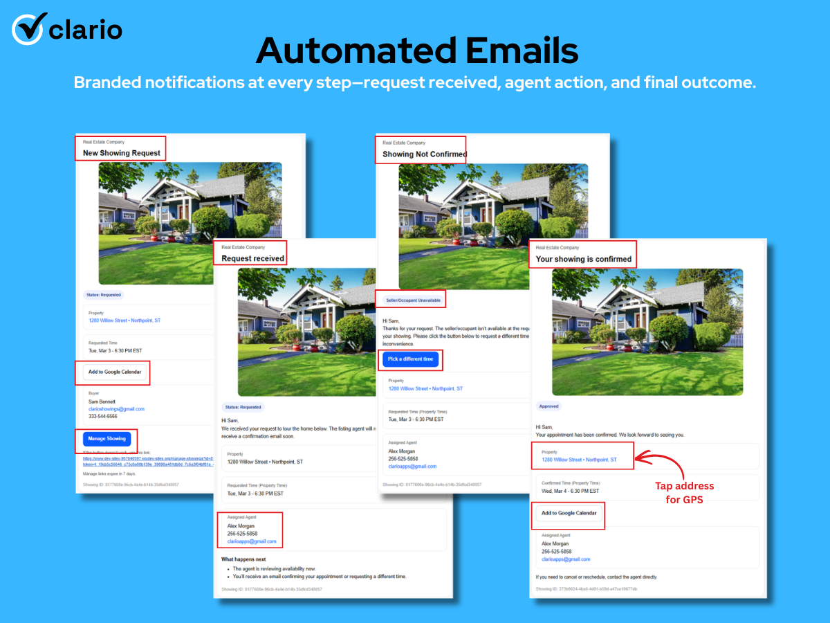 ✓ Automated emails (agent + buyer)